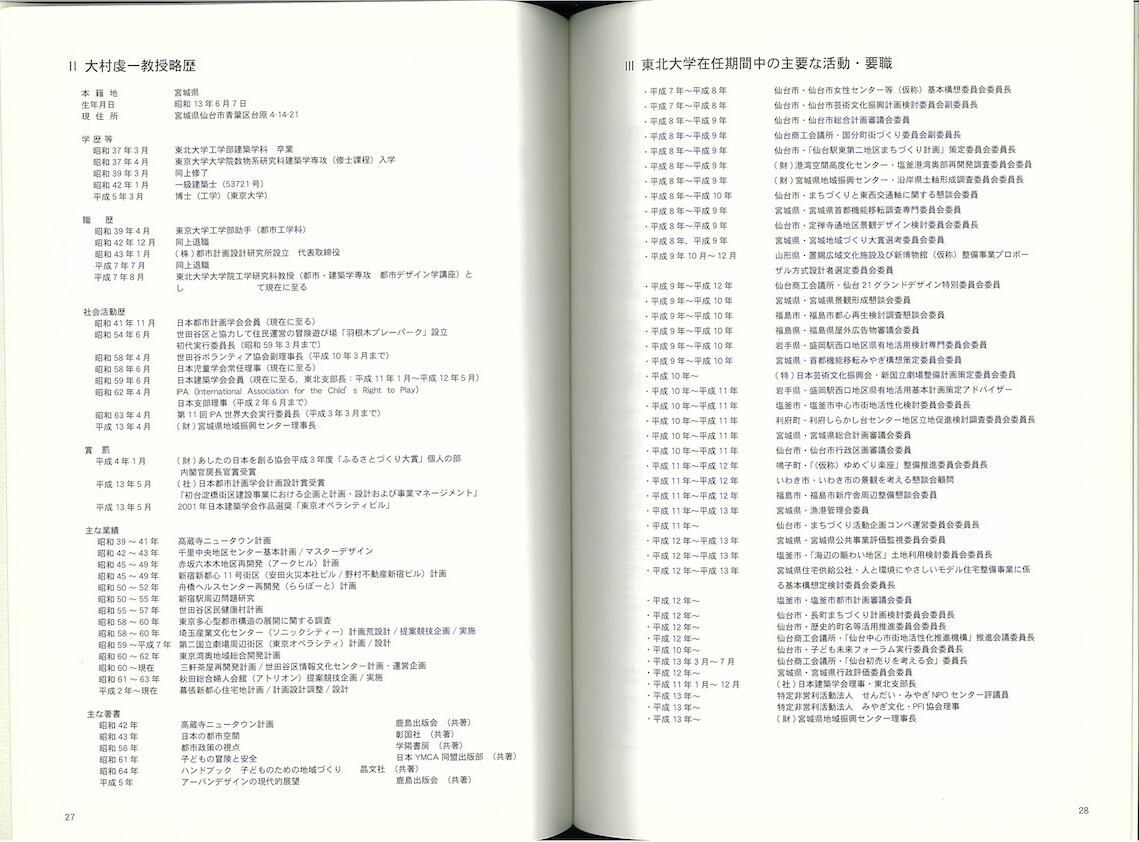 大村虔一教授 記念刊行物『東京オペラシティ街区建設プロジェクト』『仙台の内在する都市デザイン力を探る』